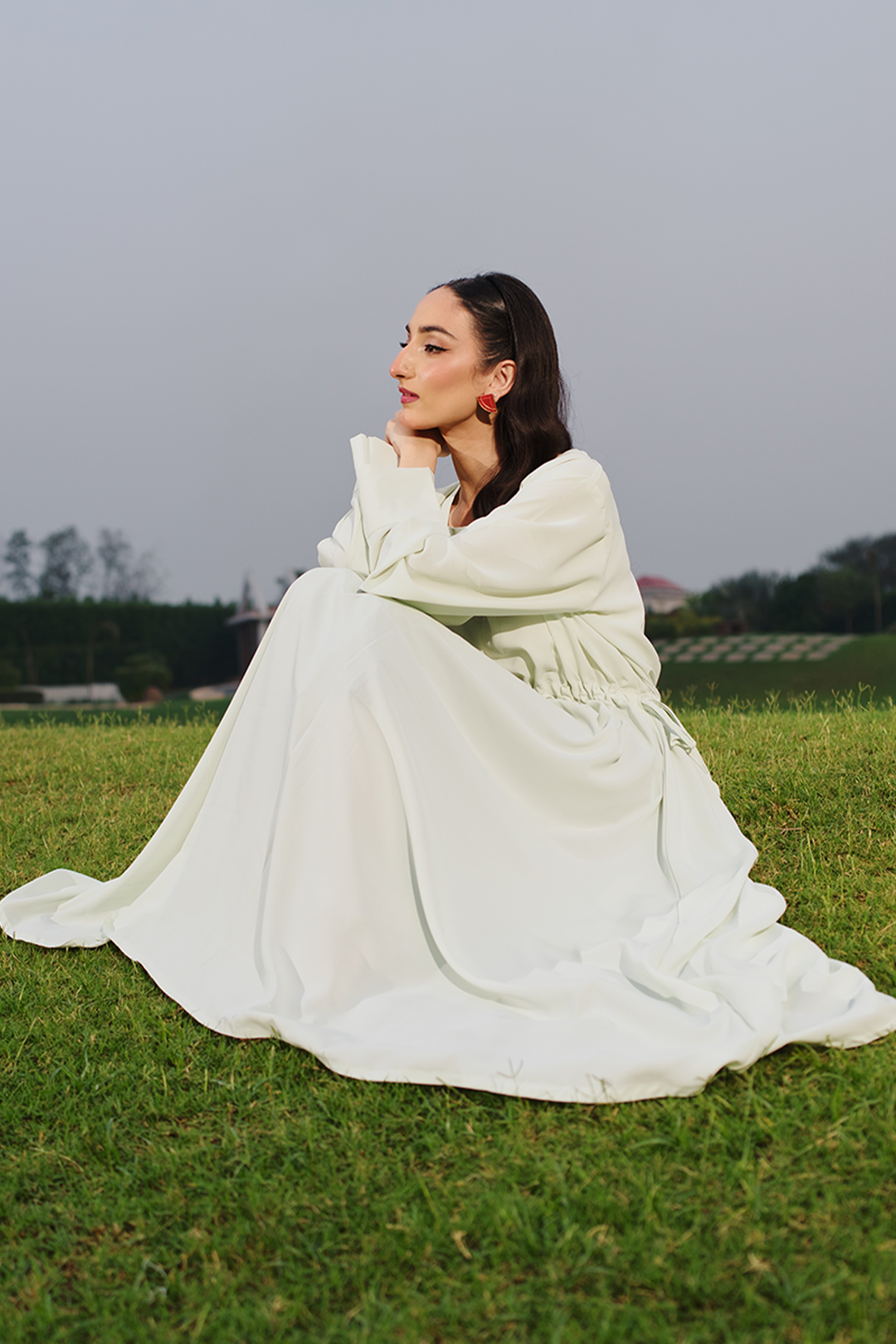 Fit type: RegularDesign Detail: Chic square-neck long dress with a cinched fabric elastic and stylish...