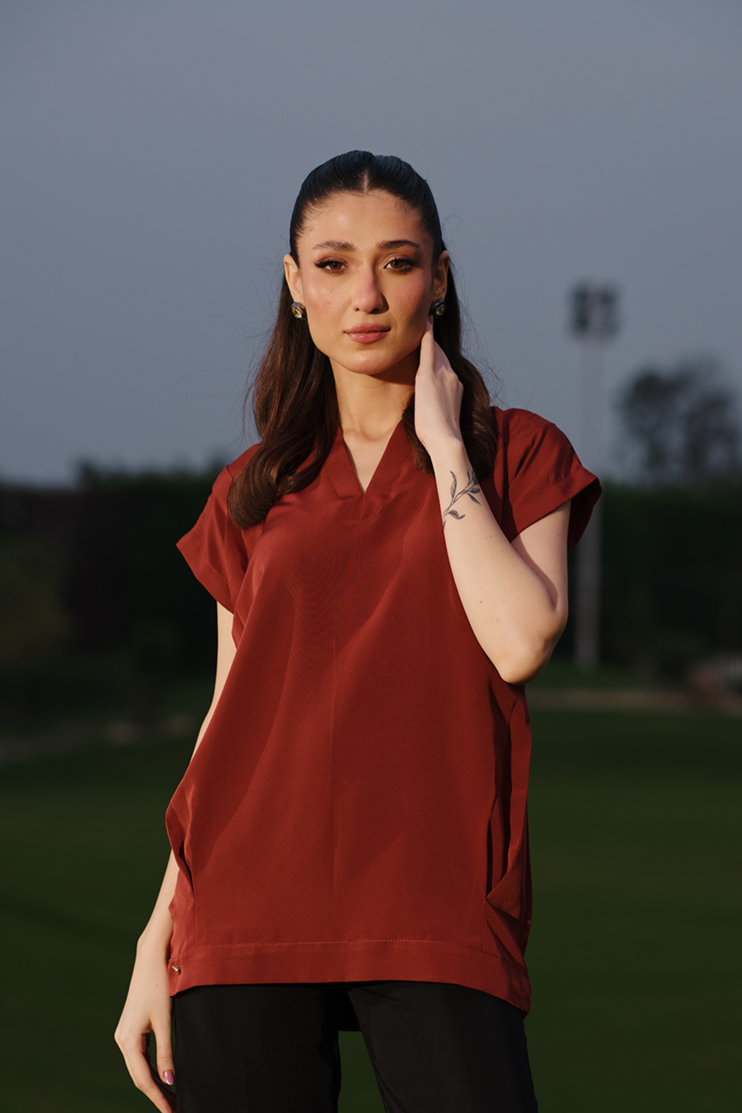 Blouse :Fit type: RelaxedDesign Detail: V ban neck shirt with inverted box pleat, full sleeves...