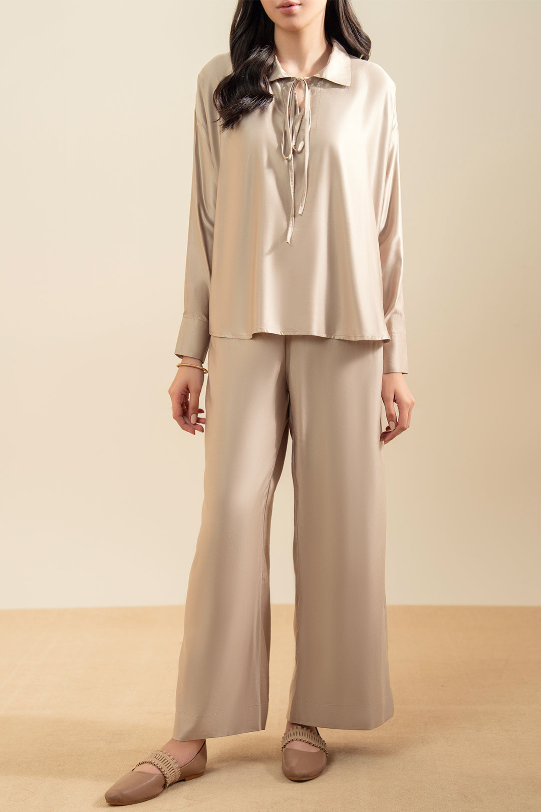 Top: Fit type: RegularDesign Detail: Round collar neck shirt with inverted pleat details, full length sleeves...