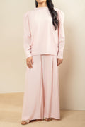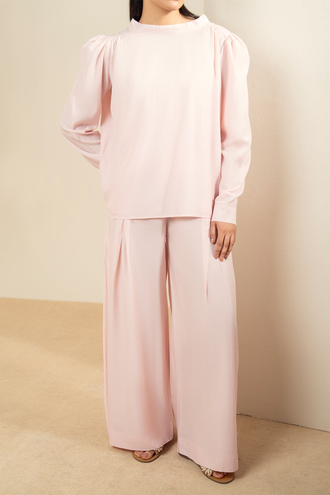 Design Detail: Round collar neck shirt with inverted pleat details, full length sleeves with pleat details